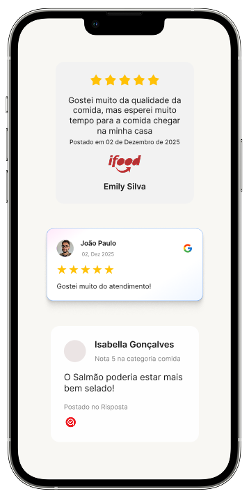 © 2026 Risposta. Todos os direitos reservados. Google é uma marca registrada da Google LLC. iFood é uma marca registrada da iFood Agência de Serviços de Restaurantes Ltda.