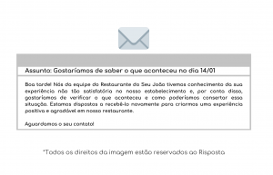 Nesta seção, vamos mostrar dois exemplos de como fazer isso, de como se comunicar com o seu cliente e fazê-lo perceber que você, como gerente ou dono da casa, se importa com a opinião dele e quer fazer o possível para melhorar cada vez mais a experiência que seu cliente tem no seu estabelecimento.