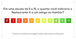 (onde 0 seriam aqueles que não recomendariam de jeito nenhum e 10, aqueles que recomendariam fortemente), Maria vai avaliar toda a sua experiência no Restaurante X, tudo será levado em consideração, alguns exemplos: